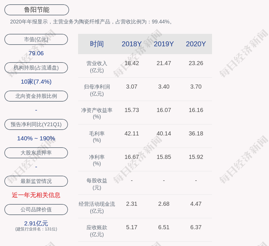 2020年年报显示,鲁阳节能的主营业务为陶瓷纤维产品,占营收比例为:99.44%。