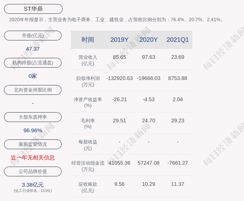 2020年年报显示,ST华鼎的主营业务为电子商务、工业、建筑业。