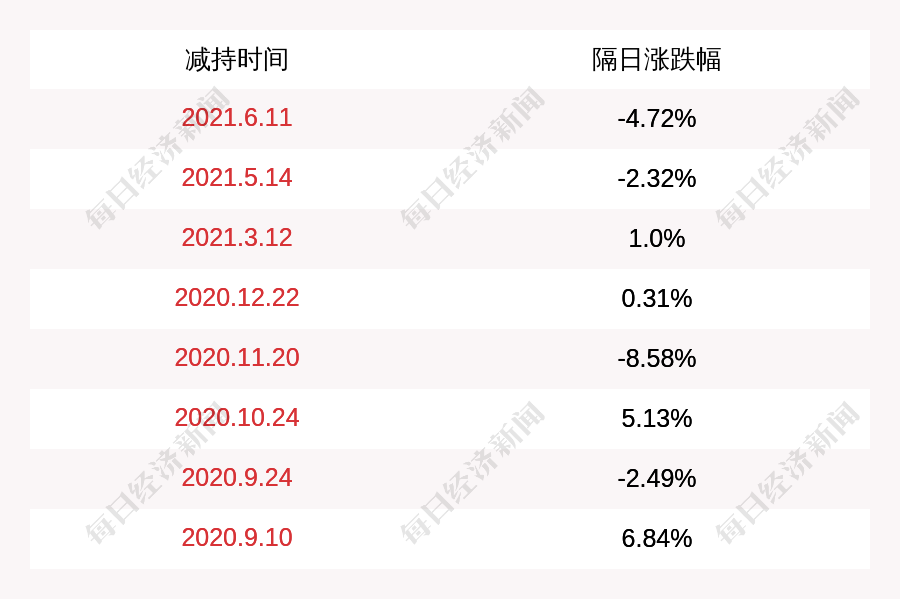 2. 中泰股份上次发布减持公告是2021年06月11日,第二个交易日下跌4.72%,中泰股份近一年共发布9次减持类公告。更多关键信息,请搜索“道达号”。
