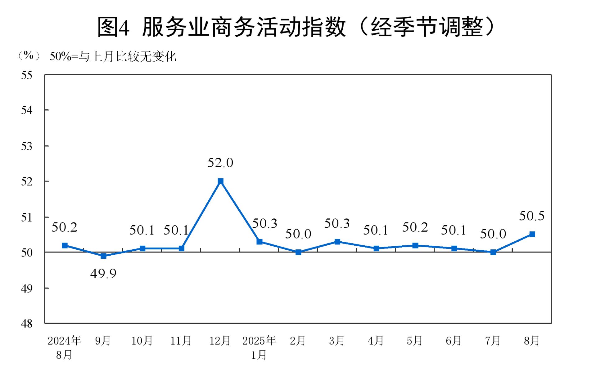 8月服务业商务活动指数为50.5%,比上月上升0.5个百分点。
