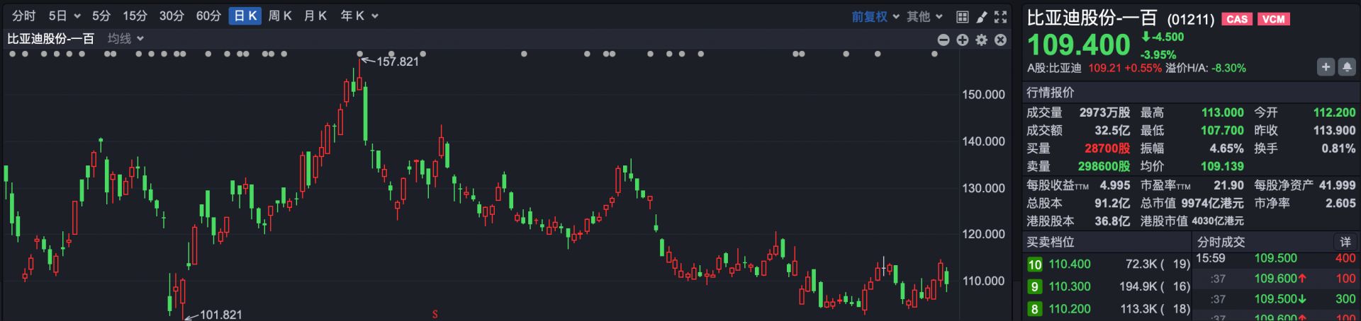 焦点板块,汽车股全线走低。其中,比亚迪股份(01211.HK)下跌3.95%,小鹏汽车-W(09868.HK)下跌2.84%,理想汽车-W(02015.HK)下跌2.35%,蔚来-SW(09866.HK)下跌2.12%。此外,北京汽车(01958.HK)、吉利汽车(00175.HK)、五菱汽车(00305.HK)、零跑汽车(09863.HK)等下跌超1%。