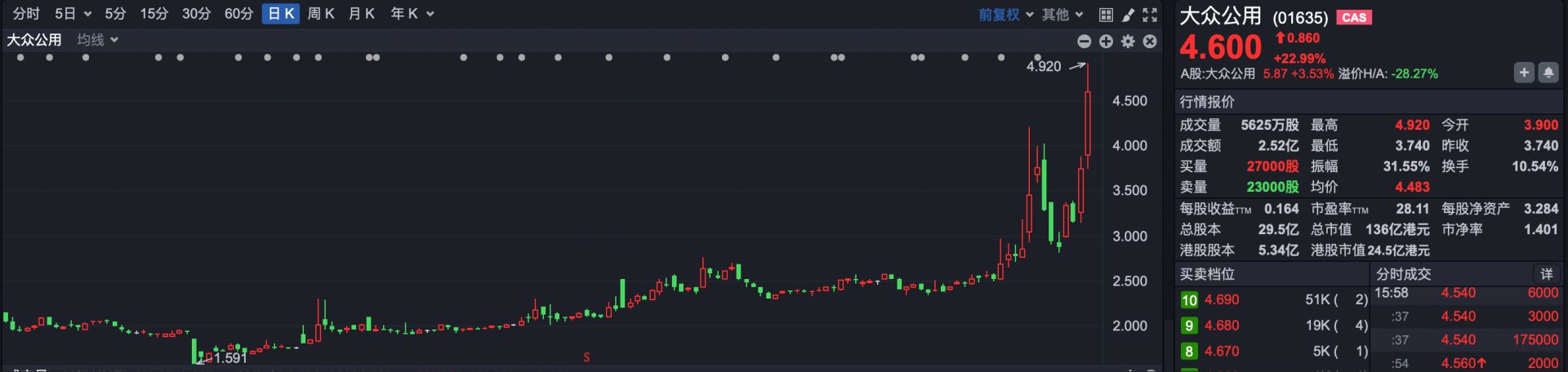 其他焦点公司,大众公用(01635.HK)涨超20%。大众公用曾在互动平台回复投资者称,公司参股深创投,深创投及其基金持有宇树科技股份。大众公用半年报显示,公司持有深创投10.80%股权。
