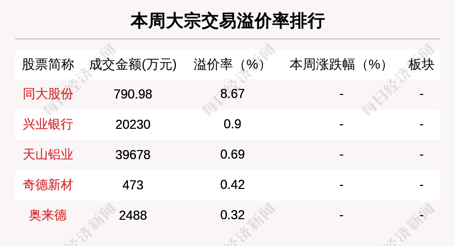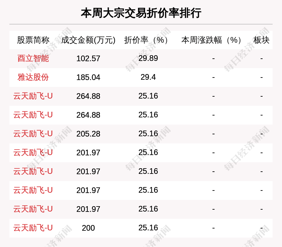 折价交易方面,本周有165笔大宗交易折价率超过10%。