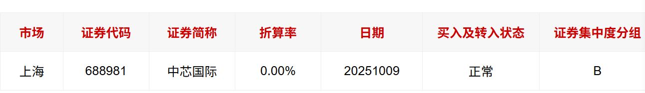 事实上,从国泰海通官网披露的信息来看,除了中芯国际A股外,曼恩斯特、永鼎股份、哈空调、宏辉果蔬、天马科技、瑞晟智能、佰维存储等多只个股的两融折算率都在今日被调降为零。某头部券商分公司相关负责人向记者表示,“我们通常不会对此类信息发短信,但会在官网进行公示。”