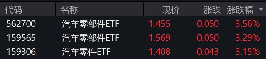 受重仓股上涨影响,跟踪中证汽车零部件主题指数的ETF涨超3%。
