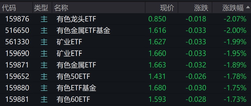 受盘面影响,有色、矿业相关ETF跌约2%。