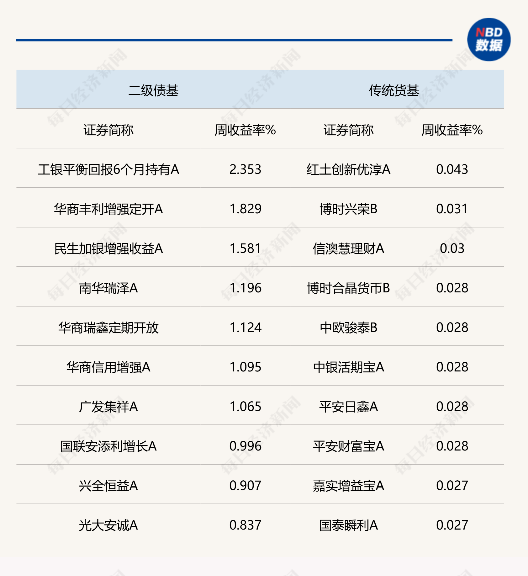 说明:上周各类公募债基头部业绩产品统计 来源:Wind