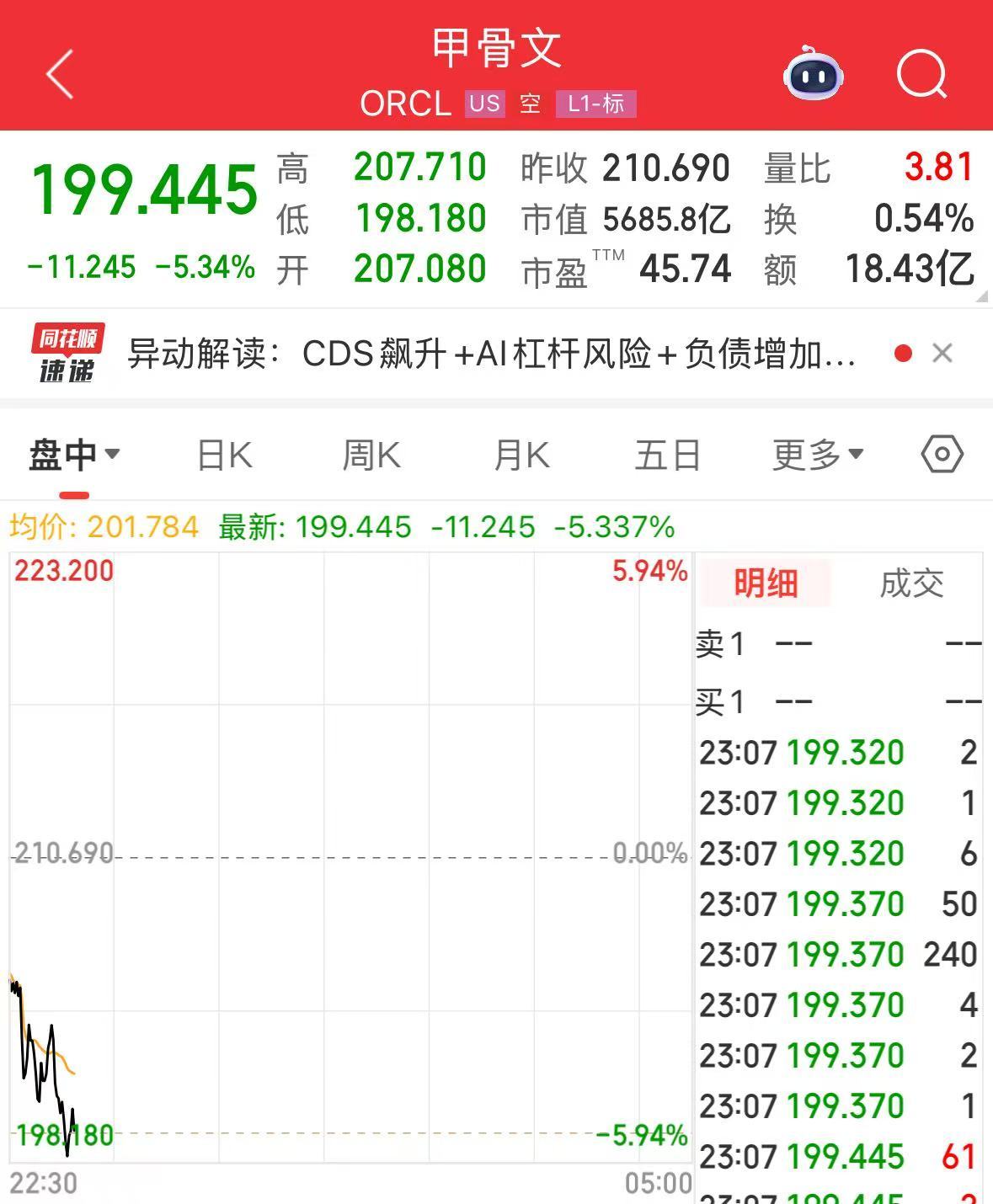 甲骨文股价跌幅扩大至5%,创6月以来新低,股价自9月高点已跌去42%。