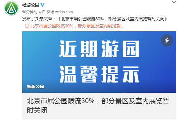 2丨北京市属公园限流30%,部分景区及室内展览暂时关闭