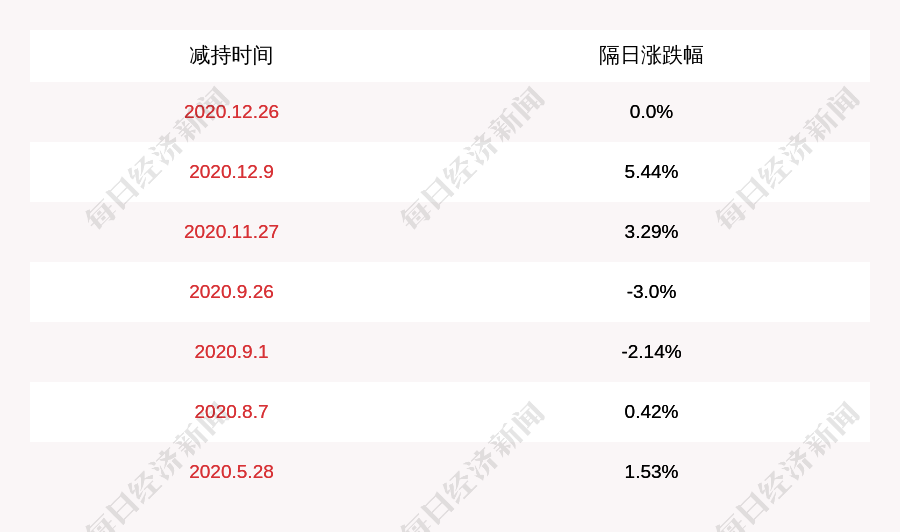 1. 东易日盛上次发布减持公告是2020年12月26日,第二个交易日上涨0.0%,东易日盛近一年共发布8次减持类公告。更多关键信息,请搜索“道达号”。