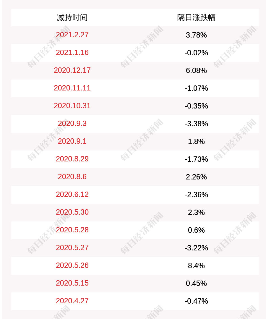 3. 宏发股份上次发布减持公告是2021年02月27日,第二个交易日上涨3.78%,宏发股份近一年共发布17次减持类公告。更多关键信息,请搜索“道达号”。