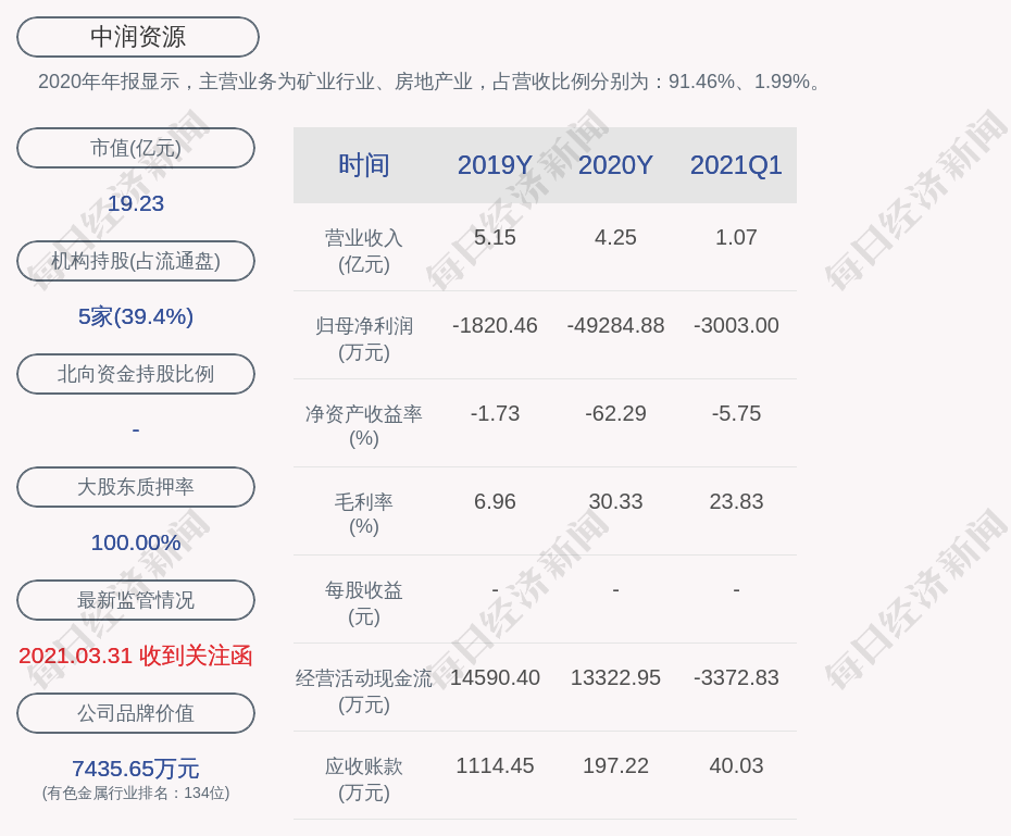 2020年年报显示,中润资源的主营业务为矿业行业、房地产业,占营收比例分别为:91.46%、1.99%。