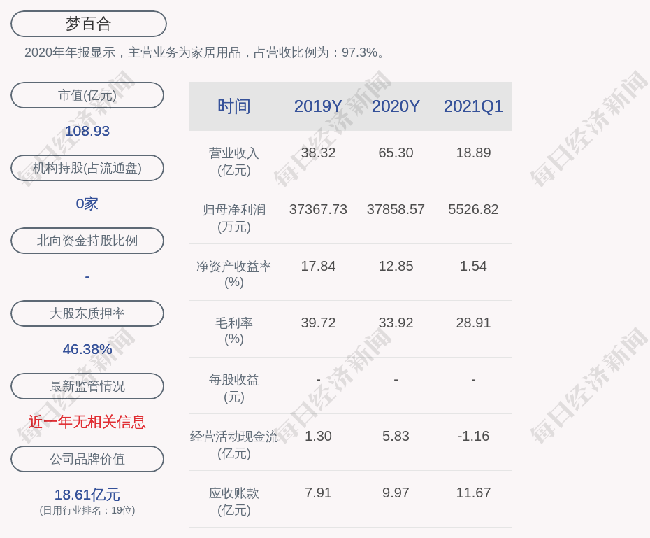 2020年年报显示,梦百合的主营业务为家居用品,占营收比例为:97.3%。