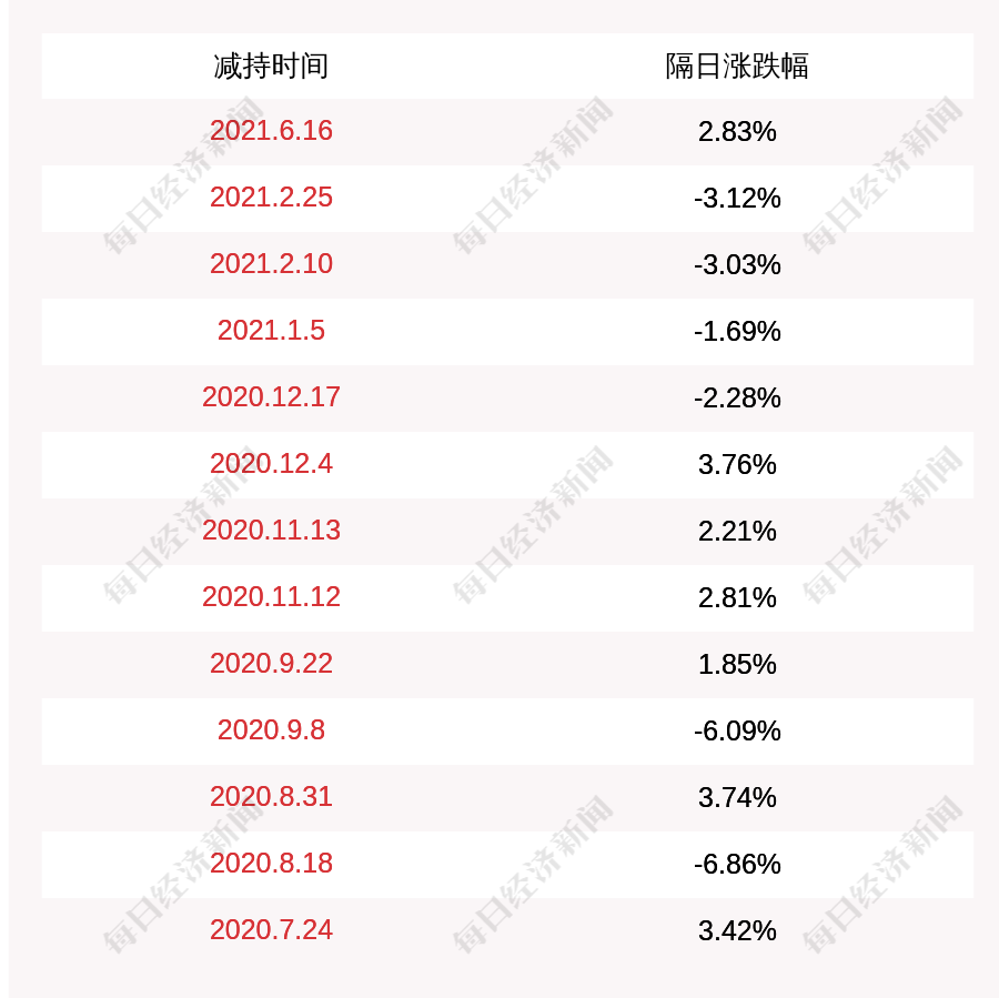 1. 西部超导上次发布减持公告是2021年06月16日,第二个交易日上涨2.83%,西部超导近一年共发布14次减持类公告。更多关键信息,请搜索“道达号”。