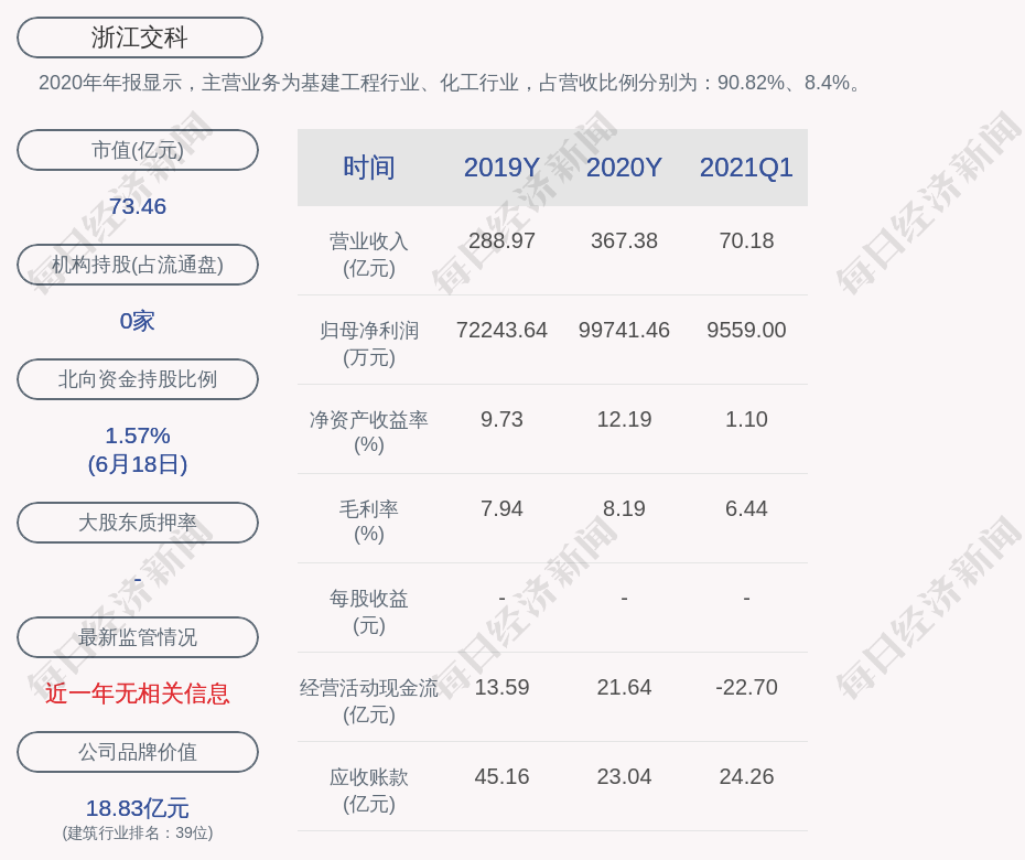 2020年年报显示,浙江交科的主营业务为基建工程行业、化工行业,占营收比例分别为:90.82%、8.4%。