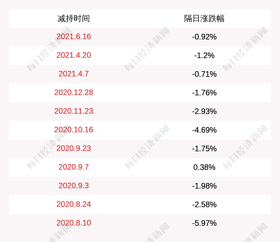 3. 爱乐达上次发布减持公告是2021年06月16日,第二个交易日下跌0.92%,爱乐达近一年共发布12次减持类公告。更多关键信息,请搜索“道达号”。