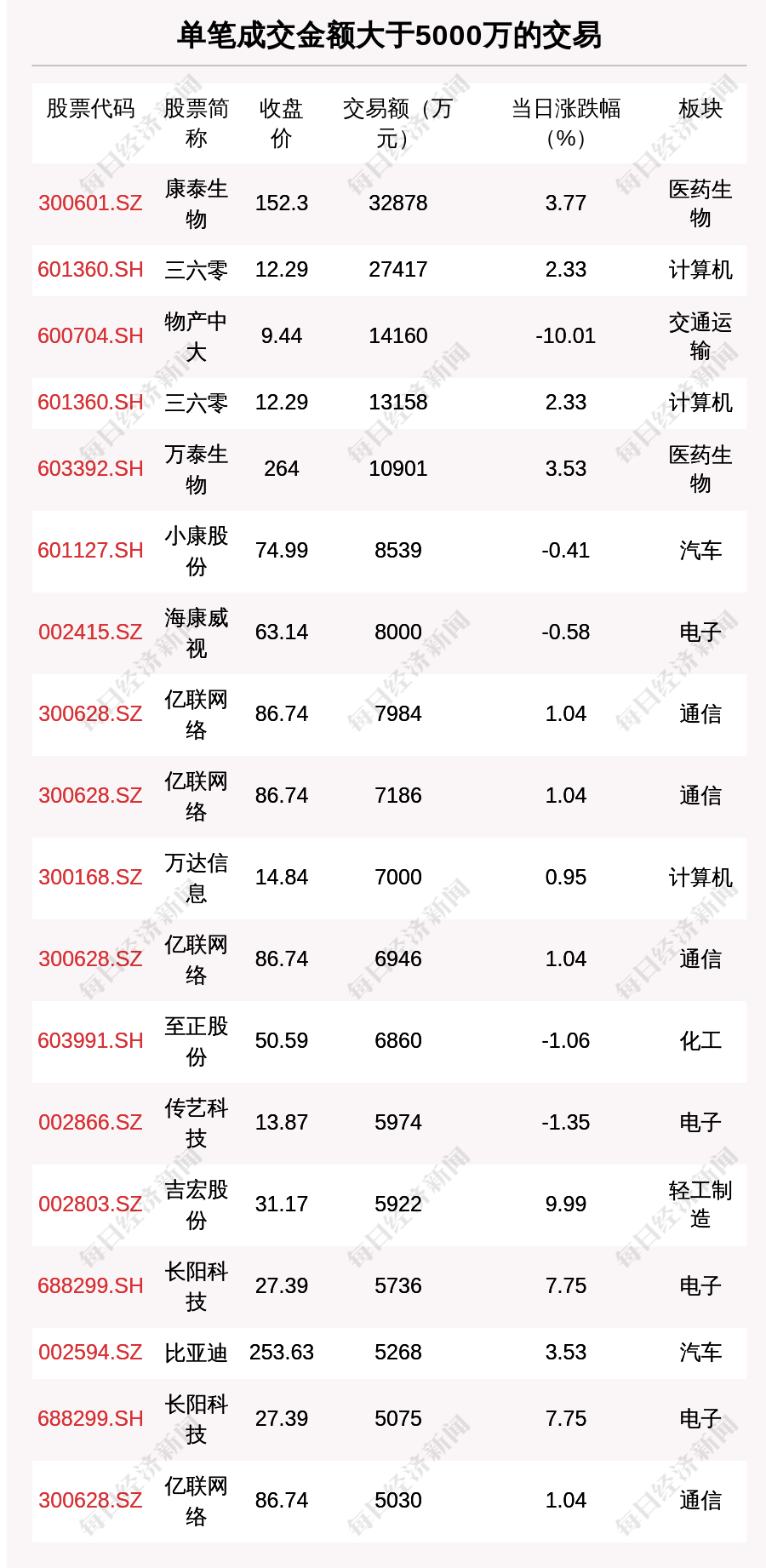 每经AI快讯,2021年6月28日,沪深两市一共发生148笔大宗交易,共成交33.8亿元,涉及74家上市公司。