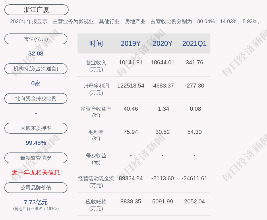 2020年年报显示,浙江广厦的主营业务为影视业、房地产业等。