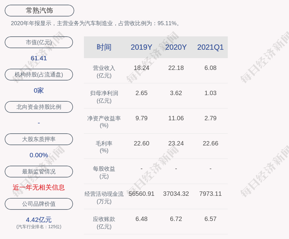 2020年年报显示,常熟汽饰的主营业务为汽车制造业。