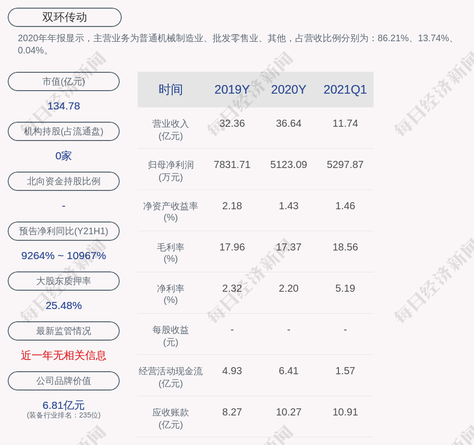 2020年年报显示,双环传动的主营业务为普通机械制造业、批发零售业等。