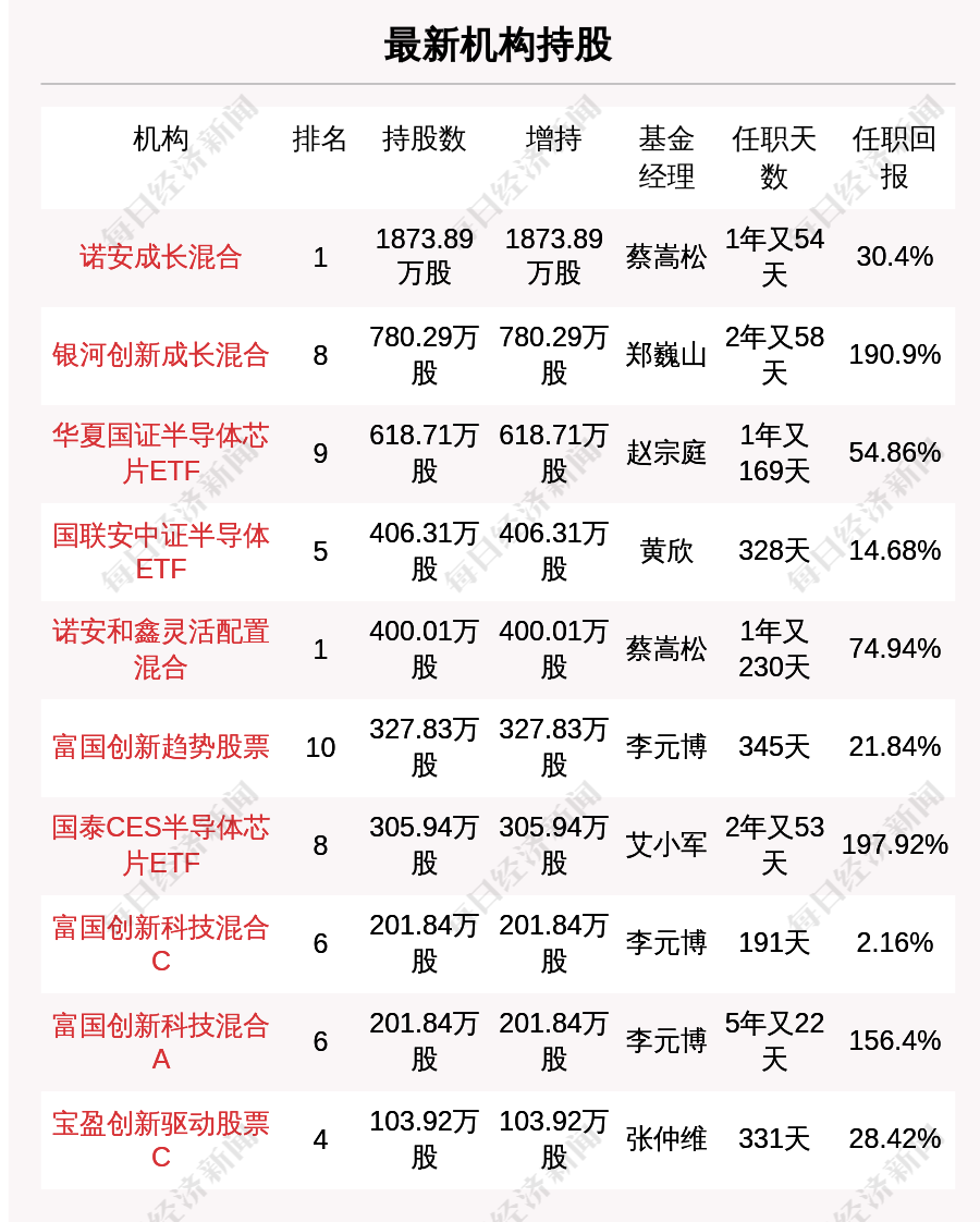 最新披露的部分基金持股: