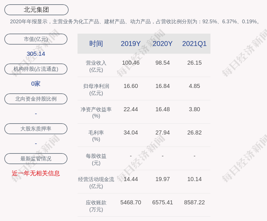 2020年年报显示,北元集团的主营业务为化工产品、建材产品、动力产品。