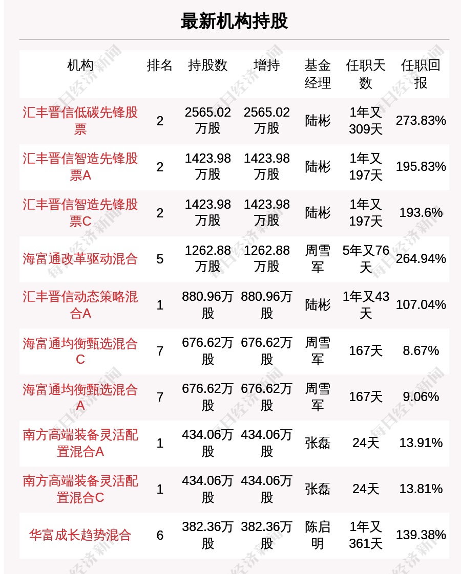 最新披露的部分基金持股: