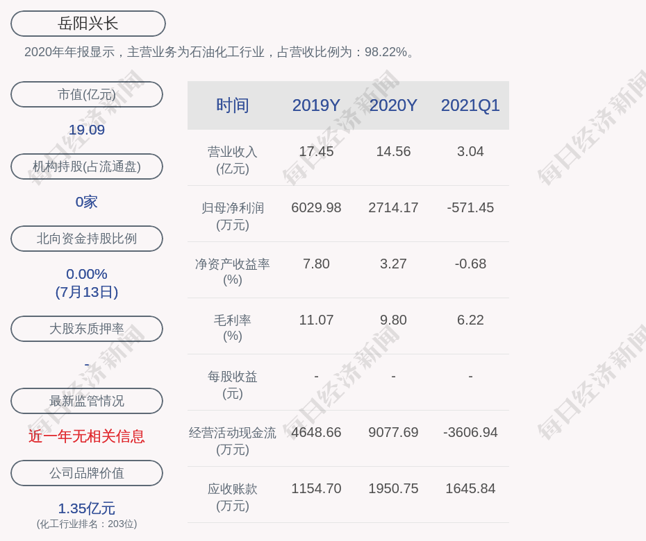 2020年年报显示,岳阳兴长的主营业务为石油化工行业。