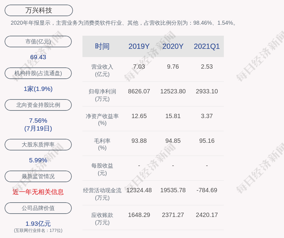 2020年年报显示,万兴科技的主营业务为消费类软件行业、其他,占营收比例分别为:98.46%、1.54%。