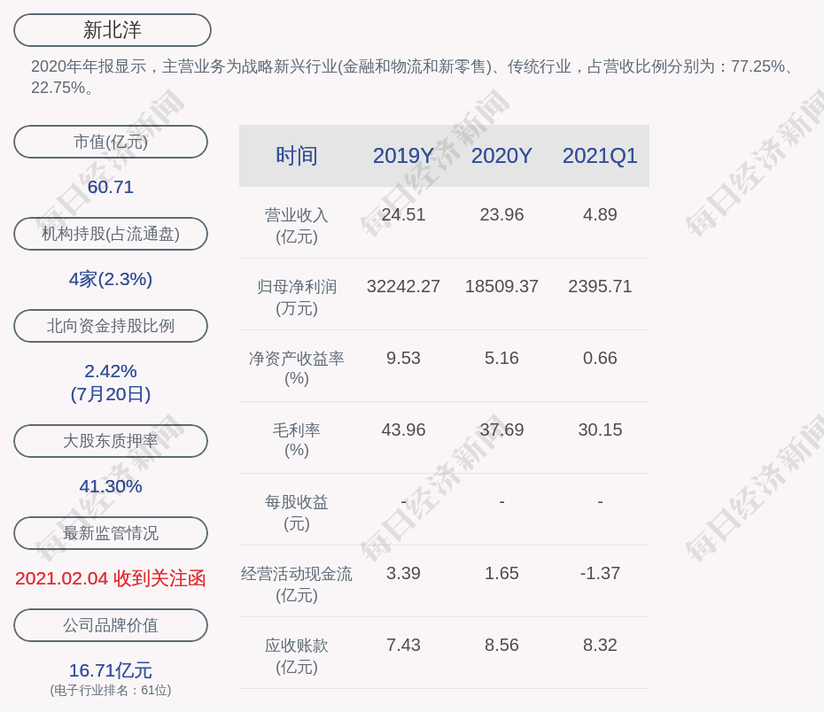 2020年年报显示,新北洋的主营业务为战略新兴行业(金融和物流和新零售)、传统行业。