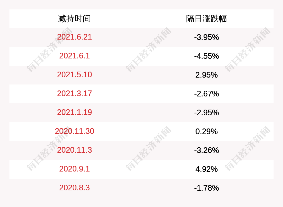 2. 恒实科技上次发布减持公告是2021年06月21日,第二个交易日下跌3.95%,恒实科技近一年共发布10次减持类公告。更多关键信息,请搜索“道达号”。
