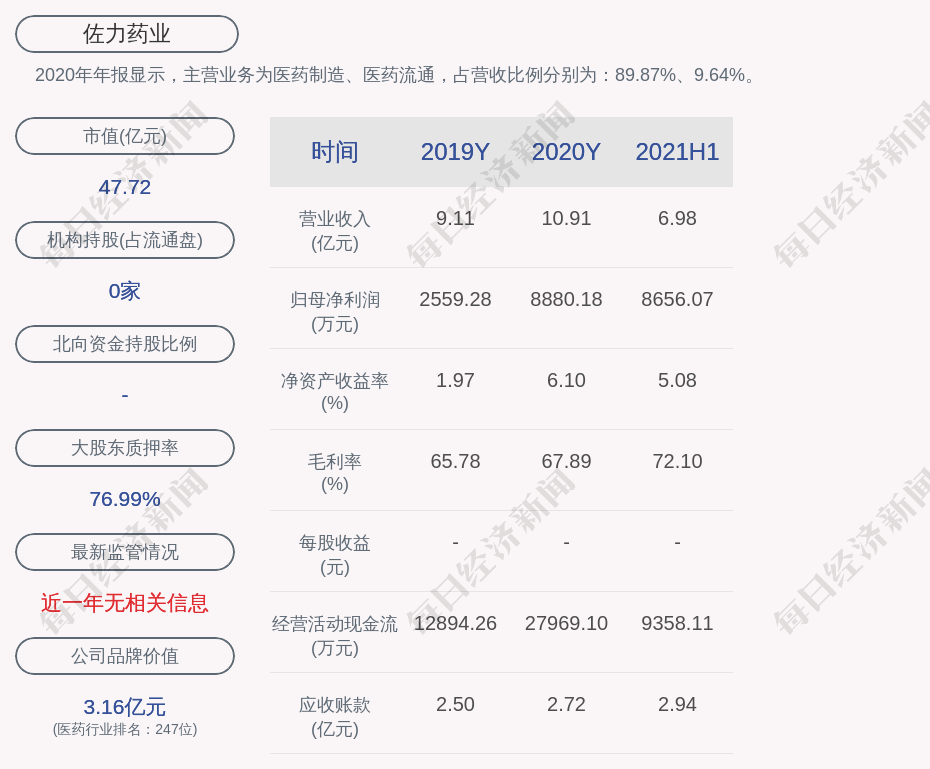2020年年报显示,佐力药业的主营业务为医药制造、医药流通,占营收比例分别为:89.87%、9.64%。