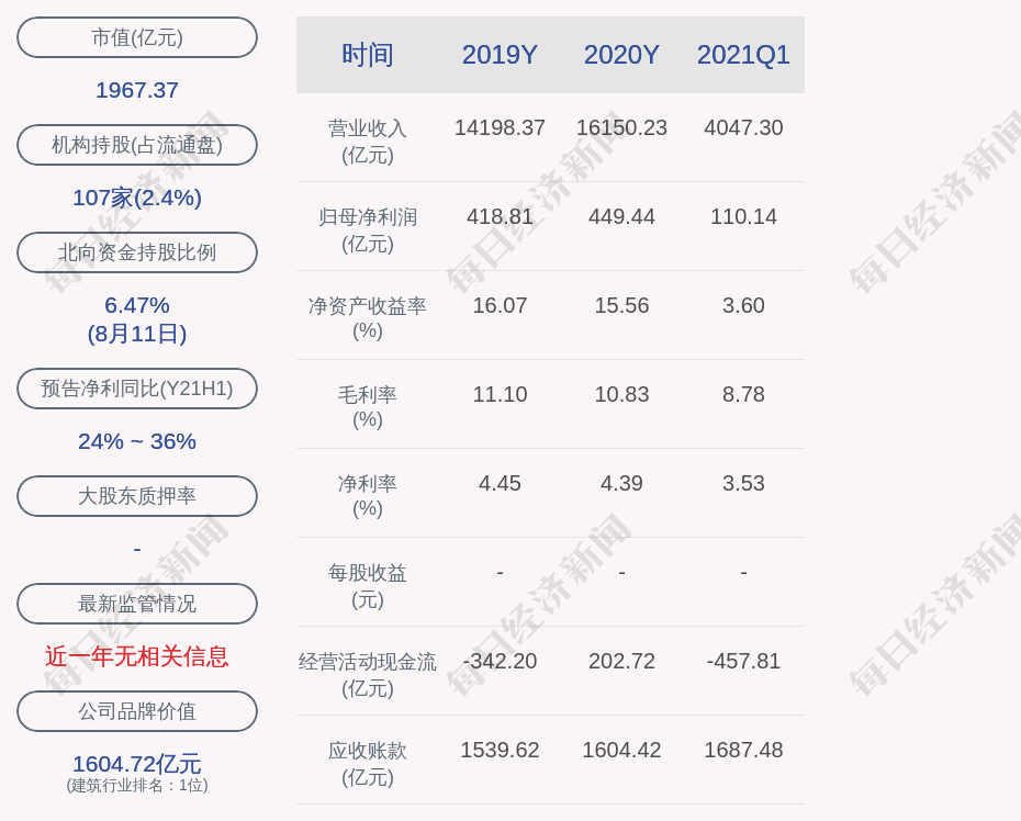 值得注意的是,A股上市公司环境风险榜·2021年1-6月榜显示,中国建筑在A股环境风险榜2021年1-6月排名第1,环境风险值为1155.903。这份A股全覆盖、数据多维度、信息严核查的国内首份上市公司环境风险榜,经过严谨事实核查和科学评估模型,每月动态更新,量化评估上市公司环境表现。