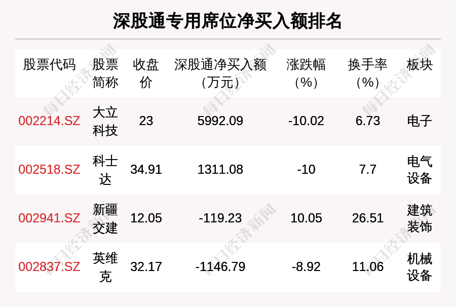 在龙虎榜中,涉及深股通专用席位的个股有4只,大立科技的深股通专用席位净买入额最大,净买入5992.09万元。