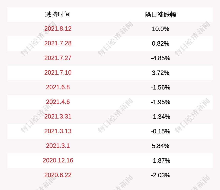 2. 腾龙股份上次发布减持公告是2021年08月12日,第二个交易日上涨10.0%,腾龙股份近一年共发布12次减持类公告。更多关键信息,请搜索“道达号”。