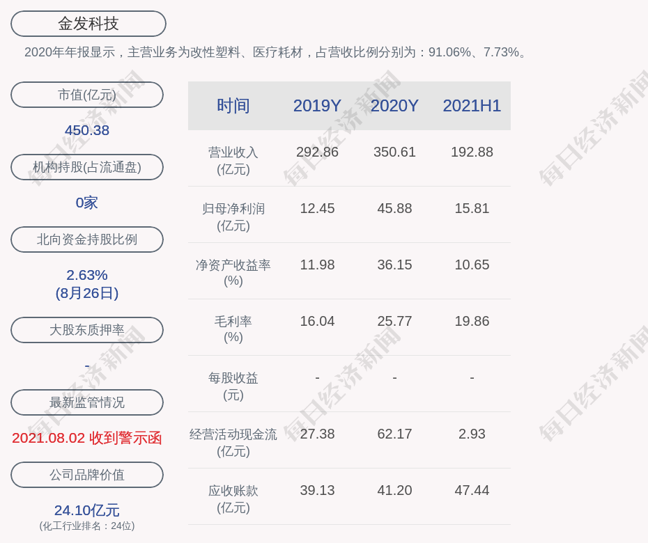 2020年年报显示,金发科技的主营业务为改性塑料、医疗耗材,占营收比例分别为:91.06%、7.73%。