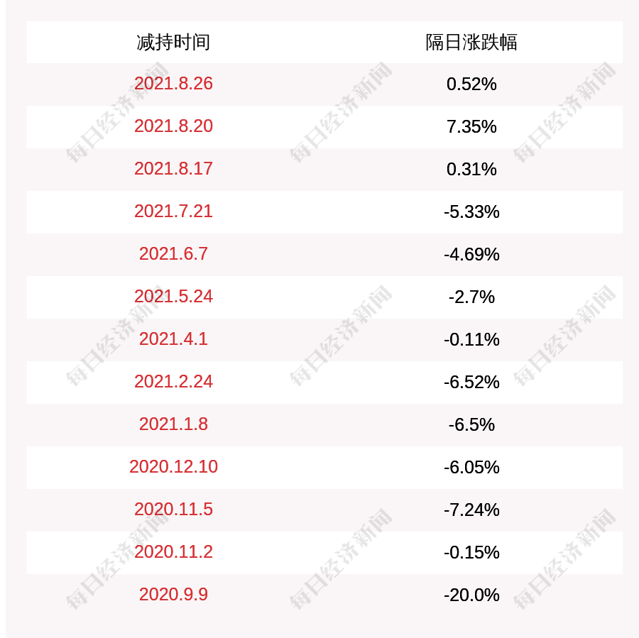 2. 厚普股份上次发布减持公告是2021年08月26日,第二个交易日上涨0.52%,厚普股份近一年共发布14次减持类公告。更多关键信息,请搜索“道达号”。