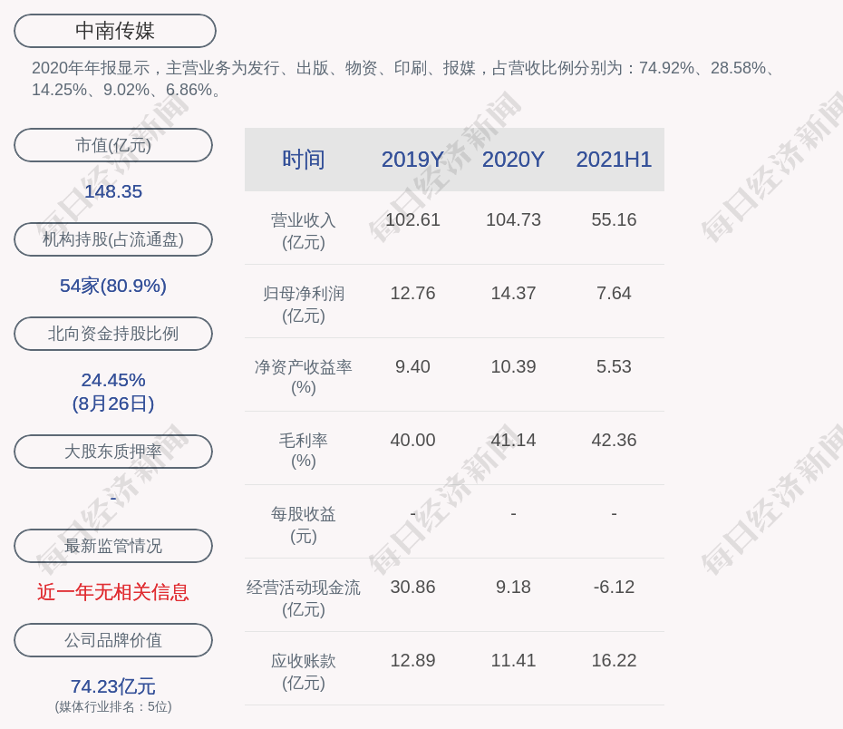 2020年年报显示,中南传媒的主营业务为发行、出版、物资、印刷、报媒,占营收比例分别为:74.92%、28.58%、14.25%、9.02%、6.86%。