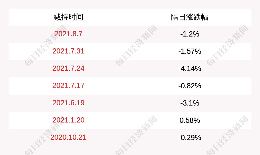3. 苏州固锝上次发布减持公告是2021年08月07日,第二个交易日下跌1.2%,苏州固锝近一年共发布8次减持类公告。更多关键信息,请搜索“道达号”。