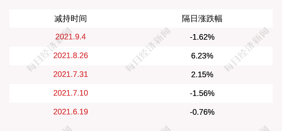 3. 晶科科技上次发布减持公告是2021年09月04日,第二个交易日下跌1.62%,晶科科技近一年共发布6次减持类公告。更多关键信息,请搜索“道达号”。