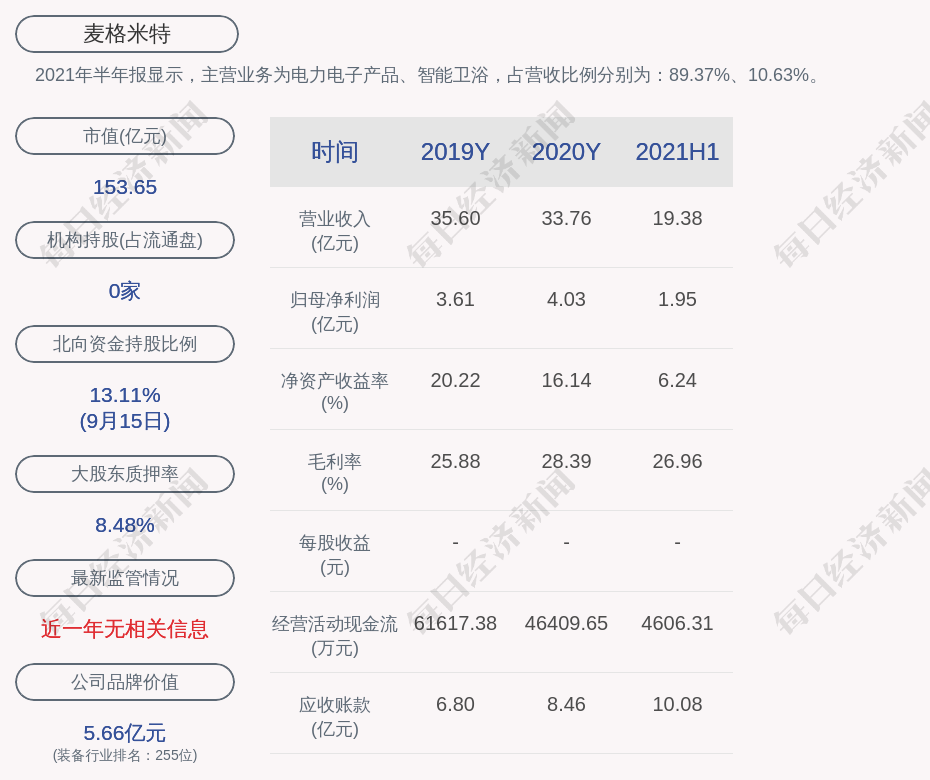 2021年半年报显示,麦格米特的主营业务为电力电子产品、智能卫浴,占营收比例分别为:89.37%、10.63%。