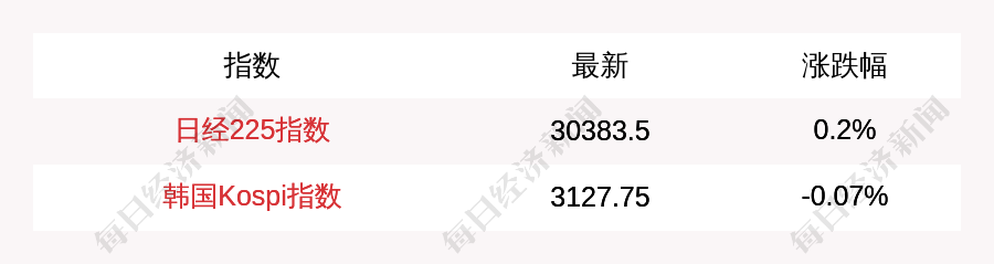 每经AI快讯:北京时间9月17日08:00,日经225指数开盘上涨60.16点,涨幅为0.2%,报30383.5点;韩国KOSPI指数开盘下跌2.34点,跌幅为0.07%,报3127.75点。