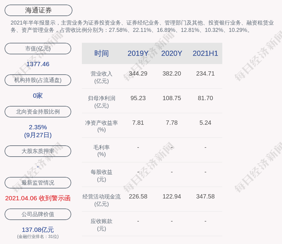 1. 海通证券近30日内北向资金持股量增加4426.49万股,占流通股比例增加0.53%;