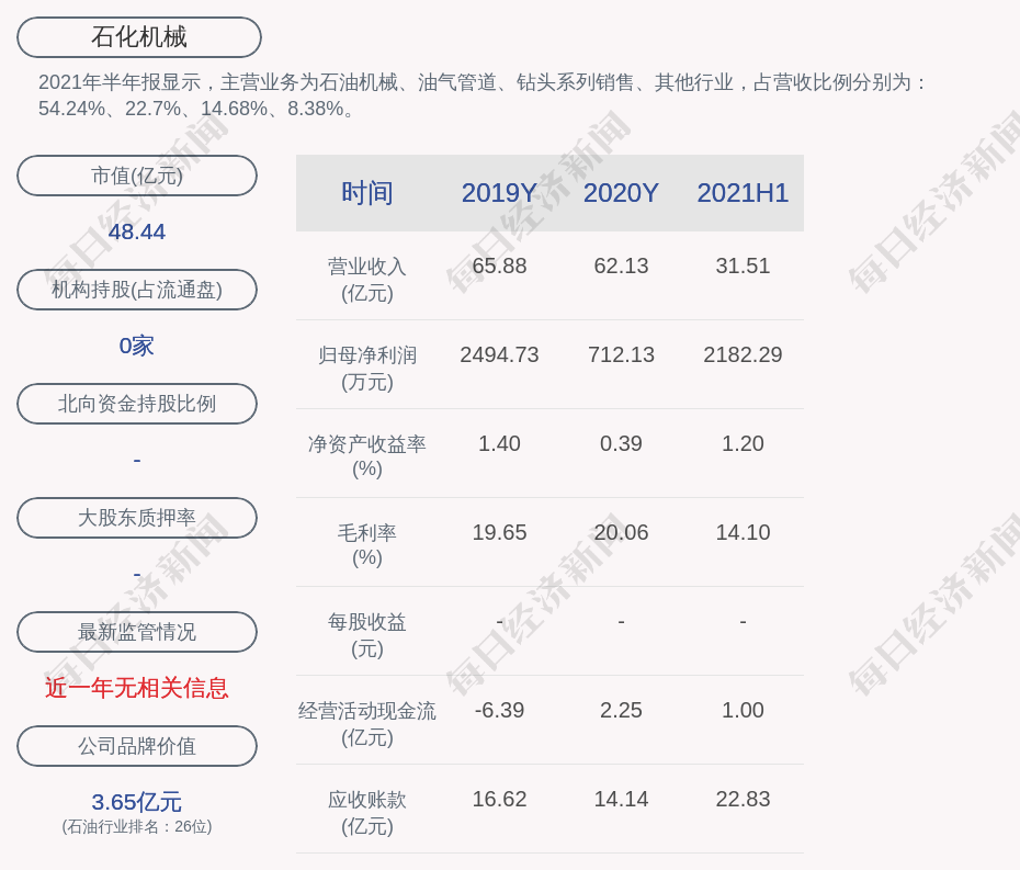 2021年半年报显示,石化机械的主营业务为石油机械、油气管道、钻头系列销售、其他行业,占营收比例分别为:54.24%、22.7%、14.68%、8.38%。