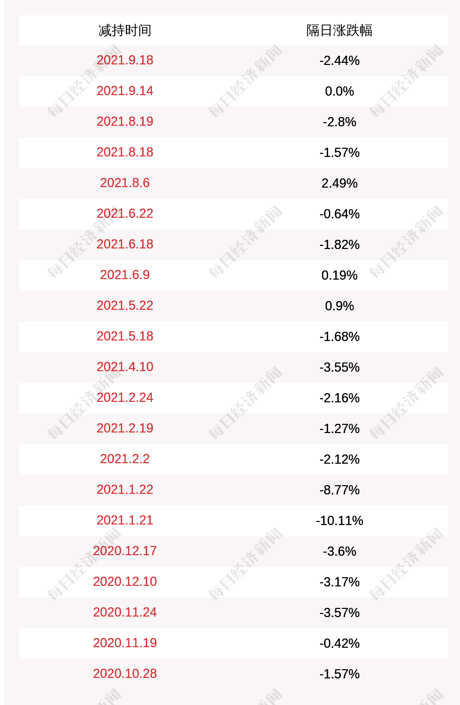 2. 丰山集团上次发布减持公告是2021年09月18日,第二个交易日下跌2.44%,丰山集团近一年共发布22次减持类公告。更多关键信息,请搜索“道达号”。