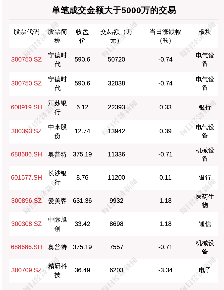 每经AI快讯,2021年10月19日,沪深两市一共发生97笔大宗交易,共成交26.15亿元,涉及62家上市公司。