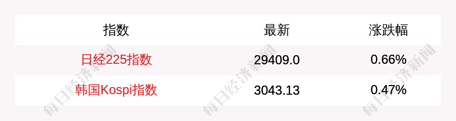 每经AI快讯:北京时间10月20日08:00,日经225指数开盘上涨193.48点,涨幅为0.66%,报29409.0点;韩国KOSPI指数开盘上涨14.09点,涨幅为0.47%,报3043.13点。