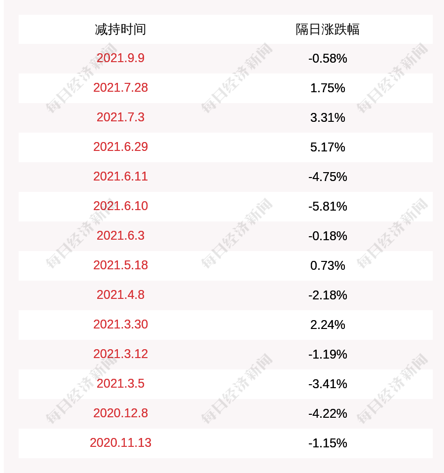 2. 新晨科技上次发布减持公告是2021年09月09日,第二个交易日下跌0.58%,新晨科技近一年共发布15次减持类公告。更多关键信息,请搜索“道达号”。