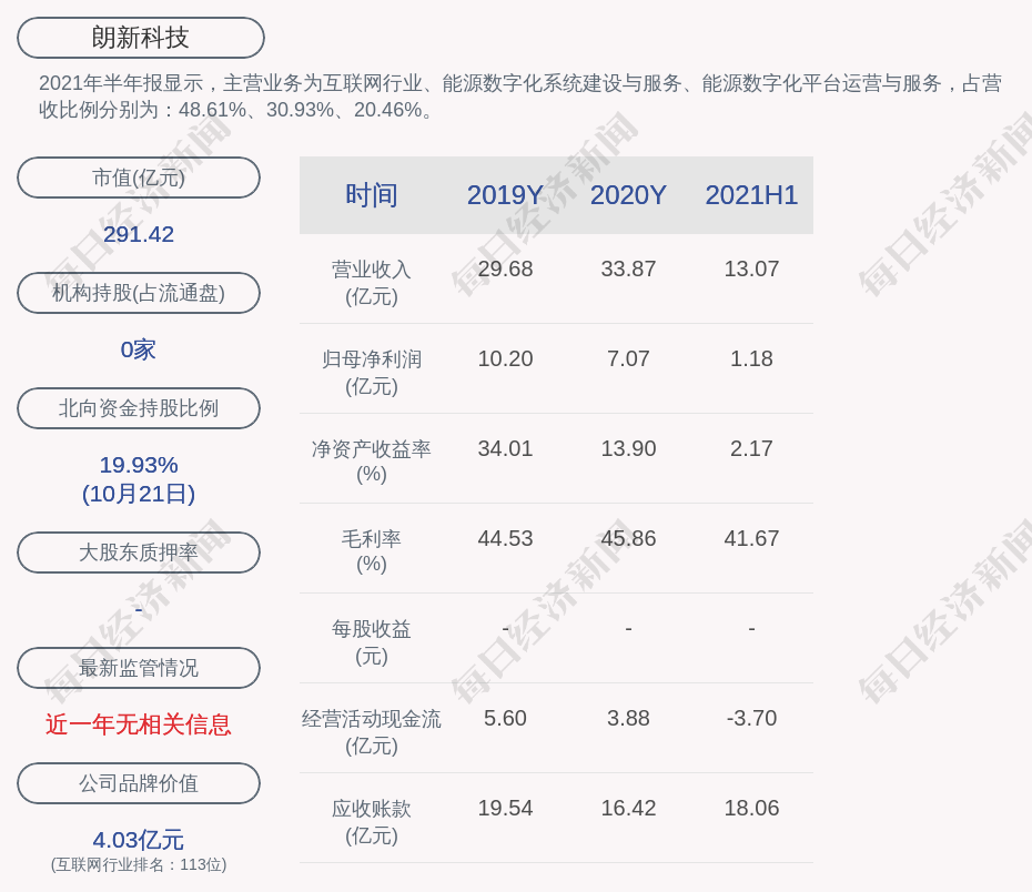 2021年半年报显示,朗新科技的主营业务为互联网行业、能源数字化系统建设与服务、能源数字化平台运营与服务,占营收比例分别为:48.61%、30.93%、20.46%。
