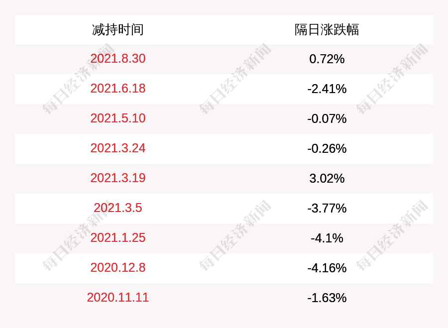 2. 万隆光电上次发布减持公告是2021年08月30日,第二个交易日上涨0.72%,万隆光电近一年共发布10次减持类公告。更多关键信息,请搜索“道达号”。